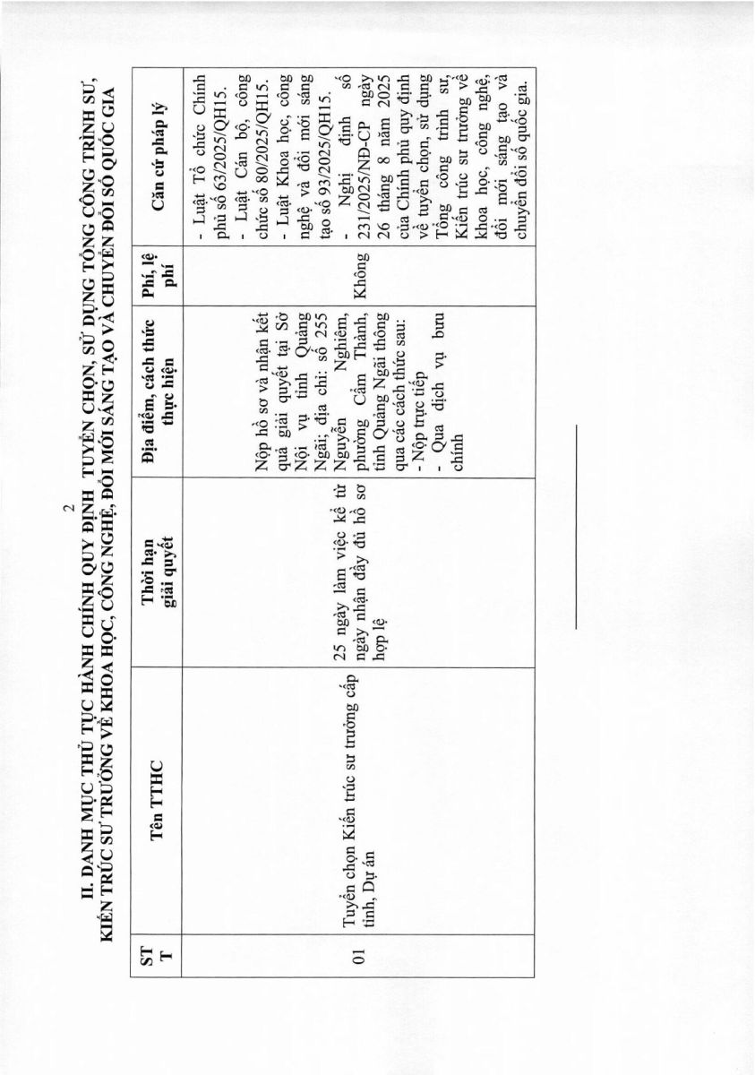QUYẾT ĐỊNH Về việc công bố danh mục thủ tục hành chính về bảo hiểm thất nghiệp triển khai thí điểm trên cổng dịch vụ công quốc gia; thủ tục quy định tuyển chọn, sử dụng tổng công trình sư, kiến trúc sư trưởng về khoa học, công nghệ, đổi mới sáng tạo và ch